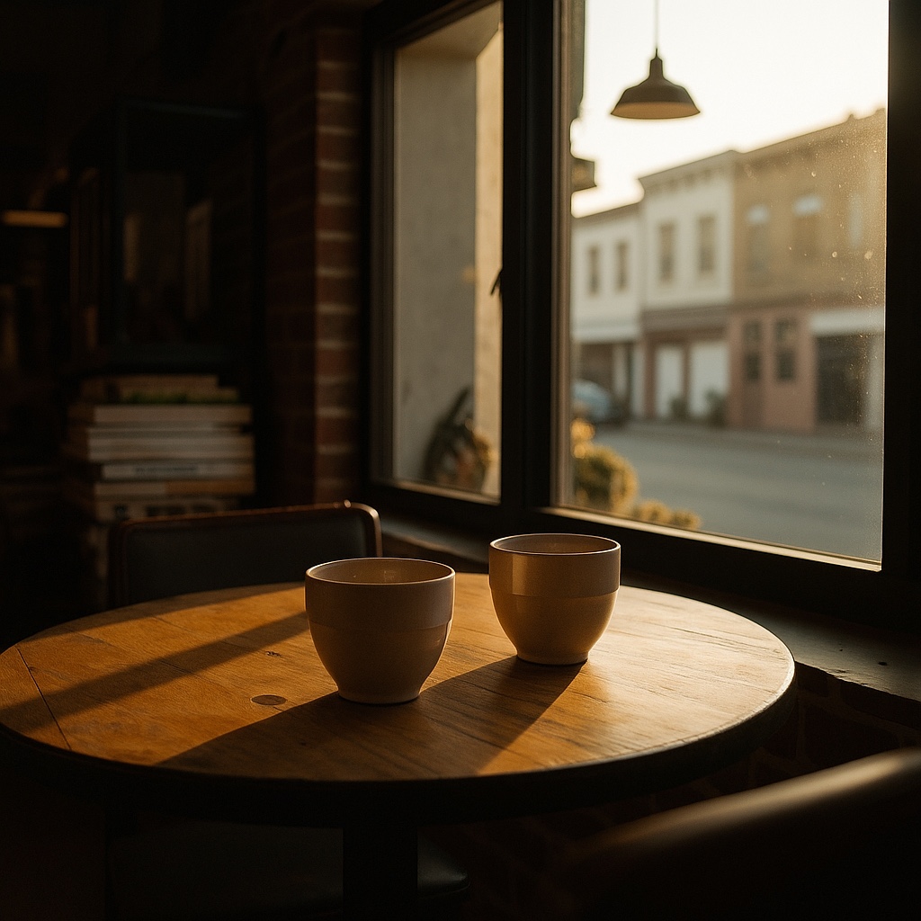 傍晚的夕陽靜靜地落在咖啡廳裡,