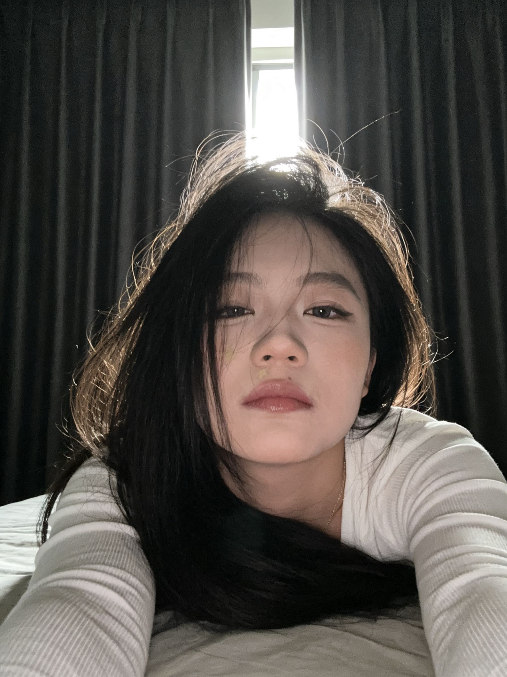 三月# 豆包生图配文:请生成一组九张以我提供的人脸为人物形象 手机前置摄像头怼脸自拍,清晨刚醒,图中主体人物趴在床上背对窗户,面对镜头,头发极其凌乱,眼睛放松,脸上画着精致的妆容,眼神迷茫。光线只从后面窗帘缝打进来,光打在脸或者发丝上,窗帘为黑灰色,身穿白色修身长袖上衣,脸上光影对比强烈,画质高清 仿佛随手一拍的真实生活瞬间。只呈现主体人物一个人的面部特写,要多几个姿势,超高清质感,皮肤高质感32k高清。