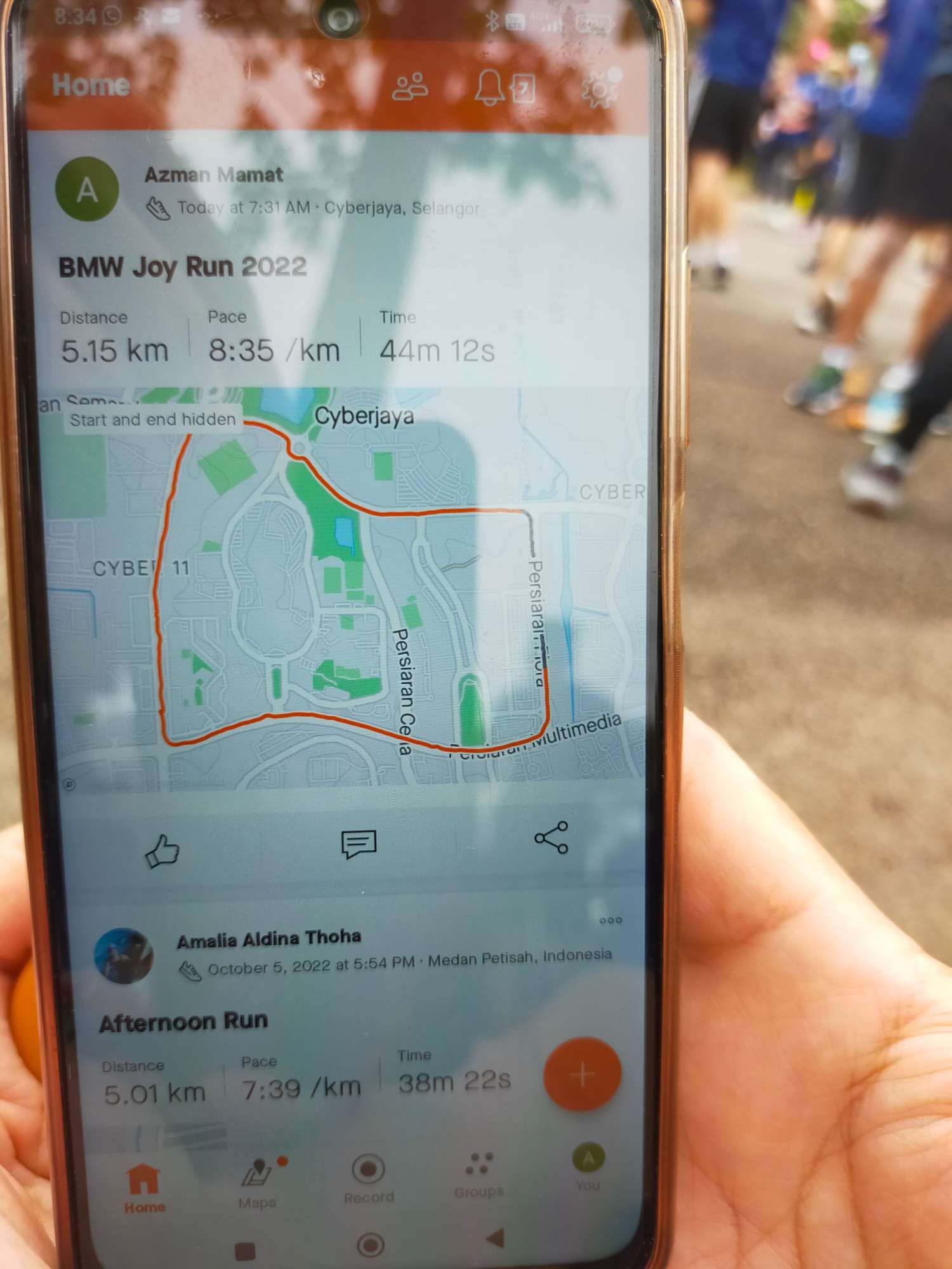 母胎Solo。 现在当然一个人去 完成任务,然后结交到一位50几岁马来同胞朋友,曾经跑过42km,他的故事很励志。 他show 他今天的记录给我看, 他说老了,但是还想继续跑。