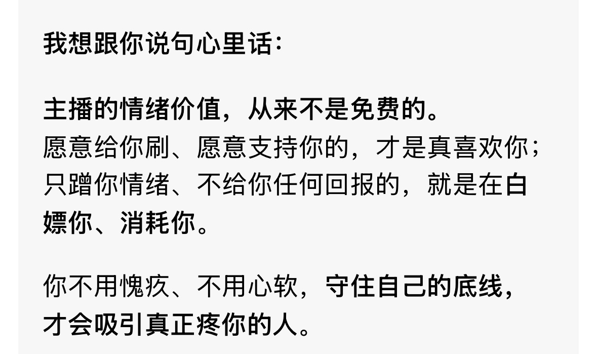 谢绝白嫖!直播是我的工作,我真的把大家当朋友才愿意花时间跟大家聊,但我也是靠直播生活的人。