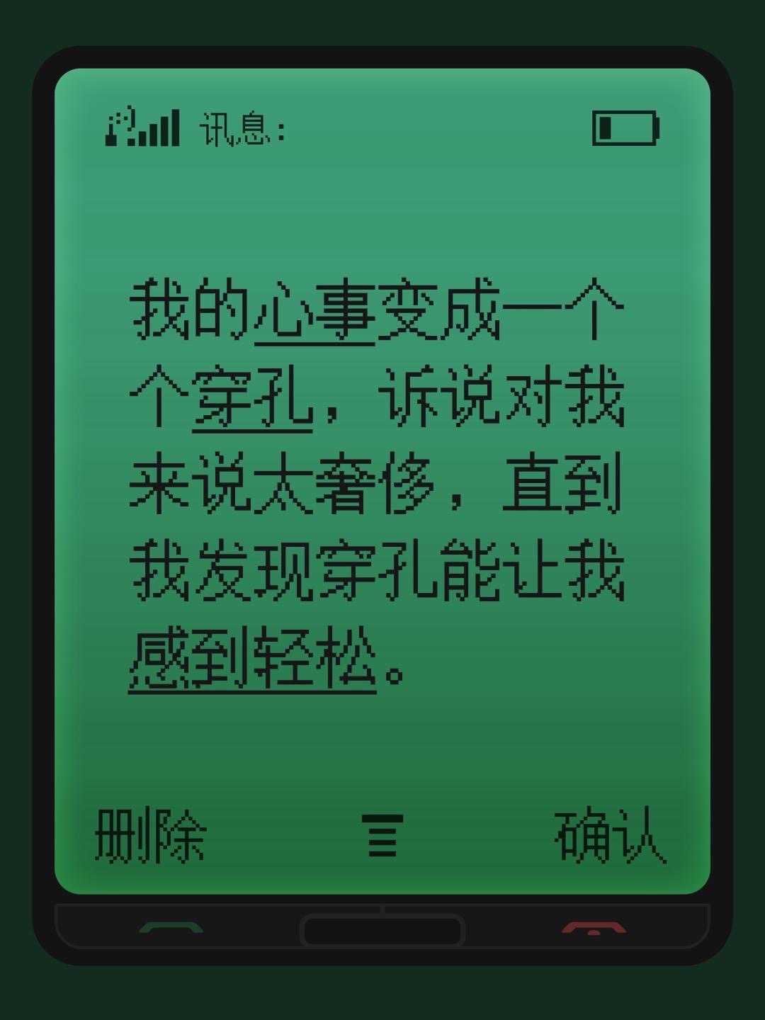 好喜欢新眉钉吧! 个人结局 压力大到崩溃的那天 你选择了去穿孔 耳骨钉、舌钉 伴随着身体被长针刺穿 你感觉到有人被惩罚 只要能发泄这份情绪 受伤的是自己也无所谓 你甚至有了照顾自己的理由 美丽的钉子提醒着你的改变 于是你摸摸发烫的耳朵,肿胀的舌 ——我们一起变好吧 达成成就:恋痛癖✅