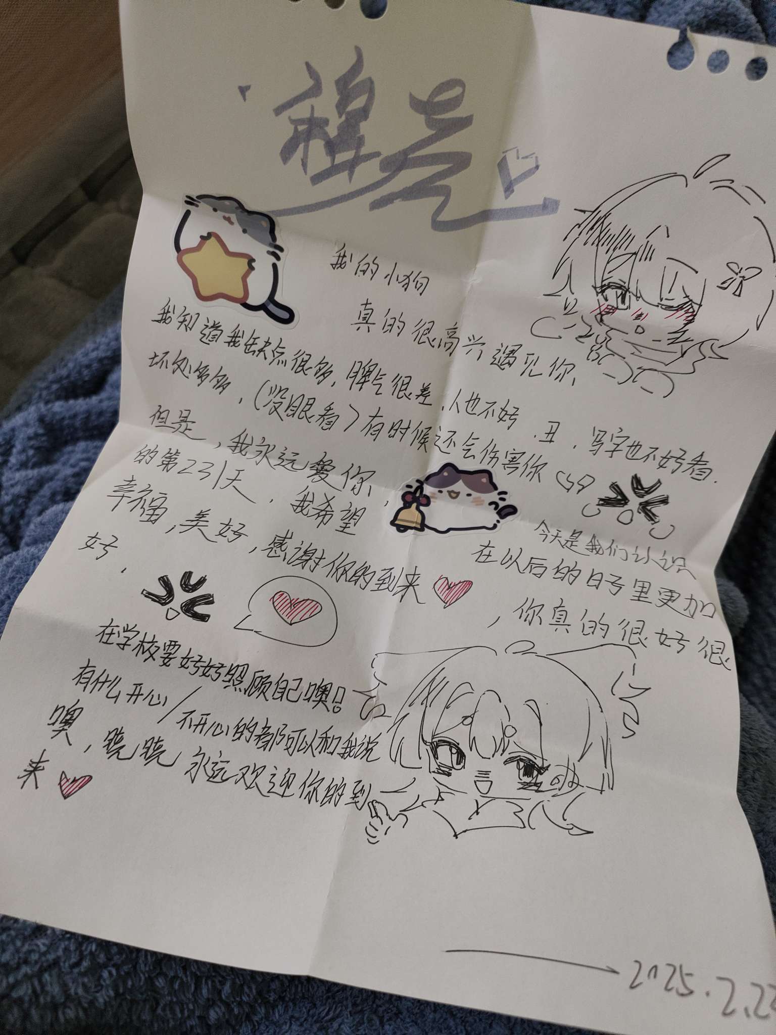 我好想你... 那时候你给我写了好多信,我好难过,本来想看以前的信安慰一下自己,可是越看就越想哭.... 这张是你给我写的最后一封信,也是我最喜欢的一封.... 我好想你....你什么时候才能再回到我身边....