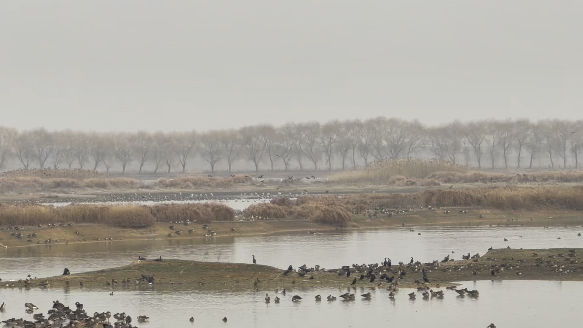 看候鸟飞回来 听取鸭声一片