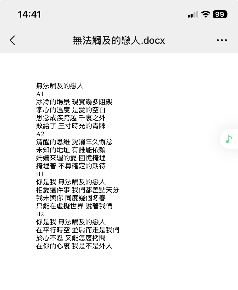 𝓜𝓨书云🍎: 自編詞曲,直播年代網戀世代和遠距離之歌的慨念