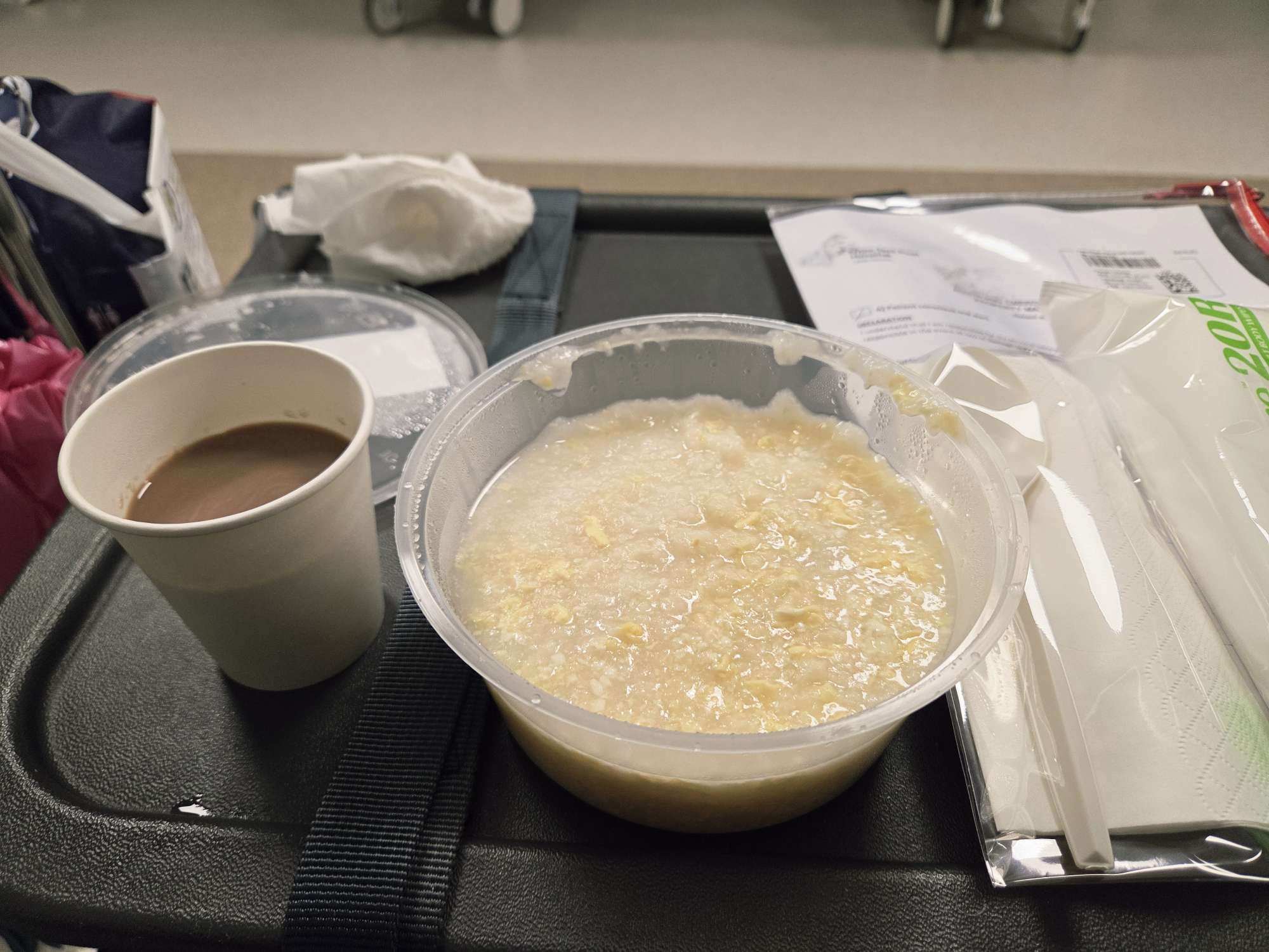 分早饭啦~ 顺带报平安 刚刚7.30am分早饭和洗漱用品--漱口水+‘洗脸’的湿纸巾🥲🥺😔🫣😱真的是。。。我都差点忘了,急诊室里的洗漱是 ‘一切从简’~! 早饭是鸡蛋+豆腐的粥。一看到粥,我就🥺😣😖。立刻联想到以前第一次因下肢瘫痪而入院时那第一顿的早餐,那🤢🤮的🐟粥~ 对它没抱太大指望,但是却意外发现还算味道不错地适口。外+可口的美禄(巧克力饮),这一餐勉强还过得去。 还好最后没用到导尿管。最后那两瓶点滴真的发挥它们的效用了。小便小得出来。尿液检测报告也出炉了。医生说尿里没有血的迹象,细菌检验也微乎其微,也没有白血球迹象。这证明吃着的抗生素有发挥作用,目前细菌感染已减少许多,一切都在往好的迹象发展,我目前小便还有点微微刺痛和腹部疼痛,是可能感染尚未完全清除的情况,我的抗生素还没吃完,医生建议吃完再观察,期间到下一次回去泌尿科复诊,如果有严重腹痛或阴部痛+发高烧,要立即挂急诊回来急诊。而这次纸尿裤里所看到的血迹,经医生检查是阴道内流出的,是我月事月经来了。 听完诊断后,真是觉得太幸运了🥹🥹🥹真的得感谢我命里的隐形守护神们和家里的观音菩萨和阿弥陀佛。还好一切迹象吉祥。希望吃完这轮抗生素治疗后,小便的问题能得到缓解。希望往后一切顺利平安吉祥🎋🧧🍀✨~ 加油,梵💪🏻💪🏻💪🏻✨一切都在往好的方面走,继续努力加油~再接再厉💪🏻💪🏻💪🏻我一定会恢复独立走路,独立自主自由的一天🍀💪🏻💪🏻💪🏻✨ #我的康复日常# #早安吃早饭#我的康复日常#挂急诊#我的康复日常#讨厌在医院的感觉#早安吃早饭#深夜的急診#我的康复日常#尿道感染细菌# #早安吃早饭# #挂急诊# #早安吃早饭# # #