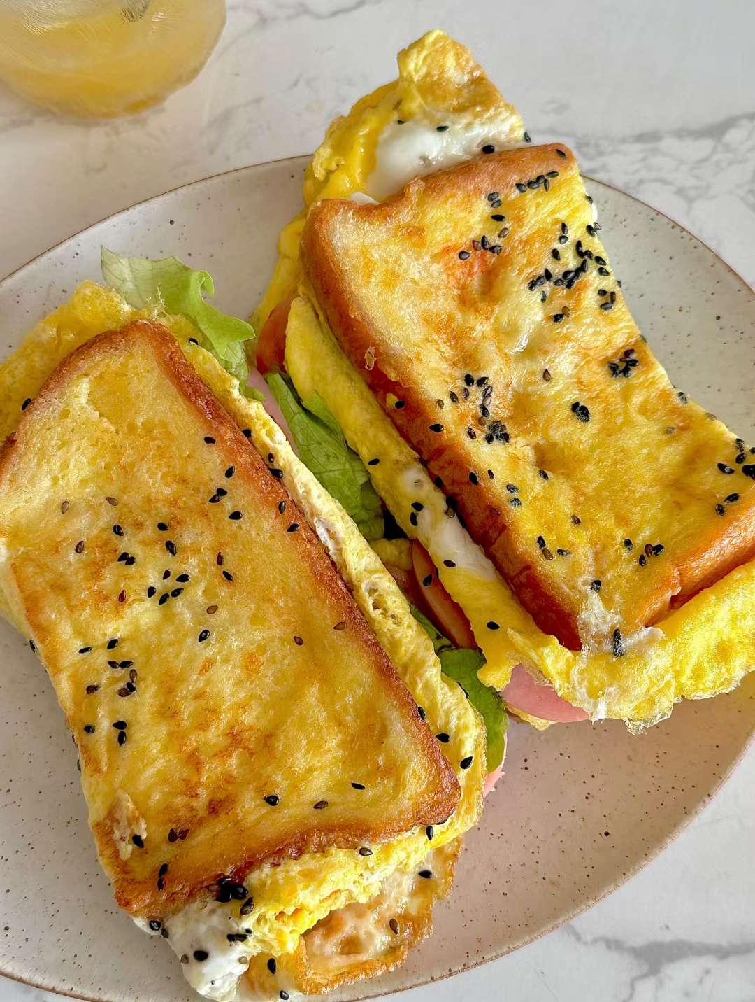 蛋包三明治🥪 十分钟快早餐 绝了!绝了!早餐几分钟搞定,做个三明治又快又随意,里面可以加自己爱吃的食材,吃完饱腹感很强 📖步骤: 1⃣️鸡蛋加盐打散,吐司切成两半 2⃣️少油小火倒入蛋液,吐司两面蘸蛋液,凝固后 再翻面,煎一下关火,依次放上食材,吐司🍞 对 折即可