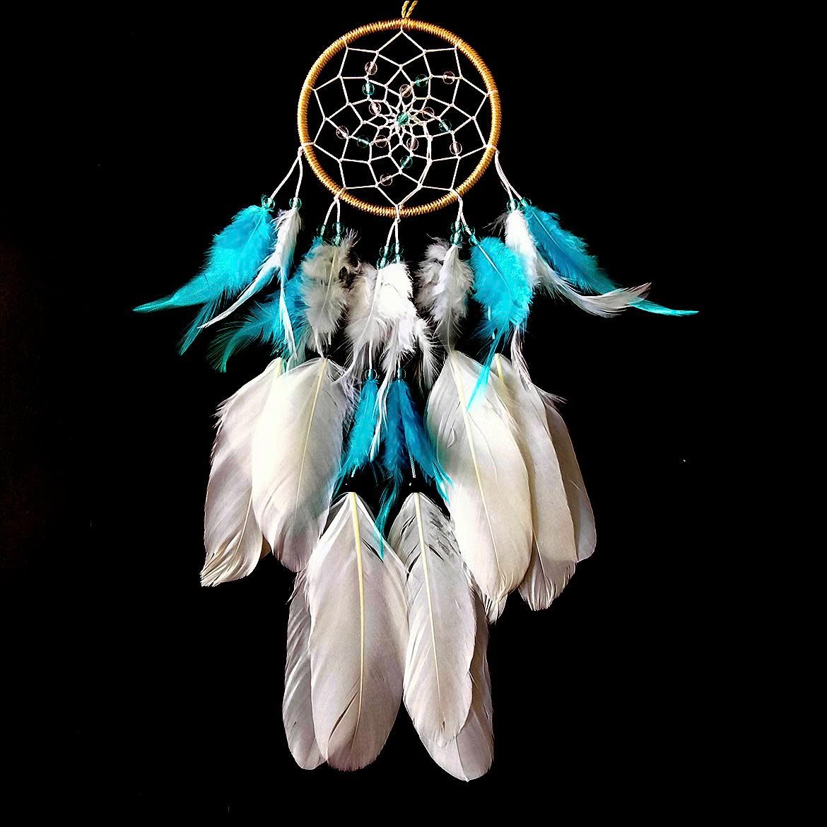 ✨Với thiết kế thủ công tinh xảo, kết hợp lông vũ trắng và xanh thiên thanh nhẹ nhàng, chiếc dreamcatcher này mang lại cảm giác thư thái, nhẹ nhàng cho bất kỳ không gian nào – từ góc học tập đến phòng ngủ.