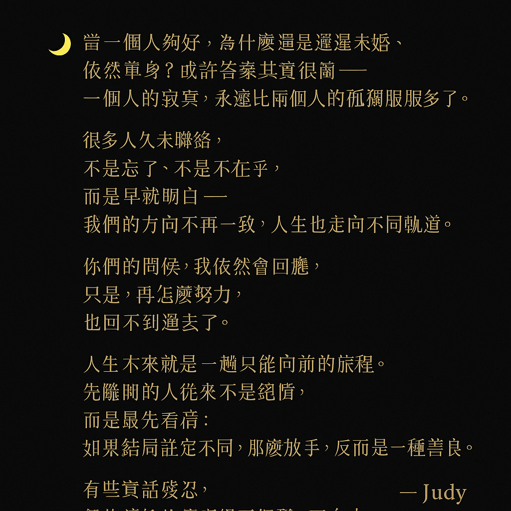 🌙 當一個人夠好,為什麼還是遲遲未婚、依然單身?