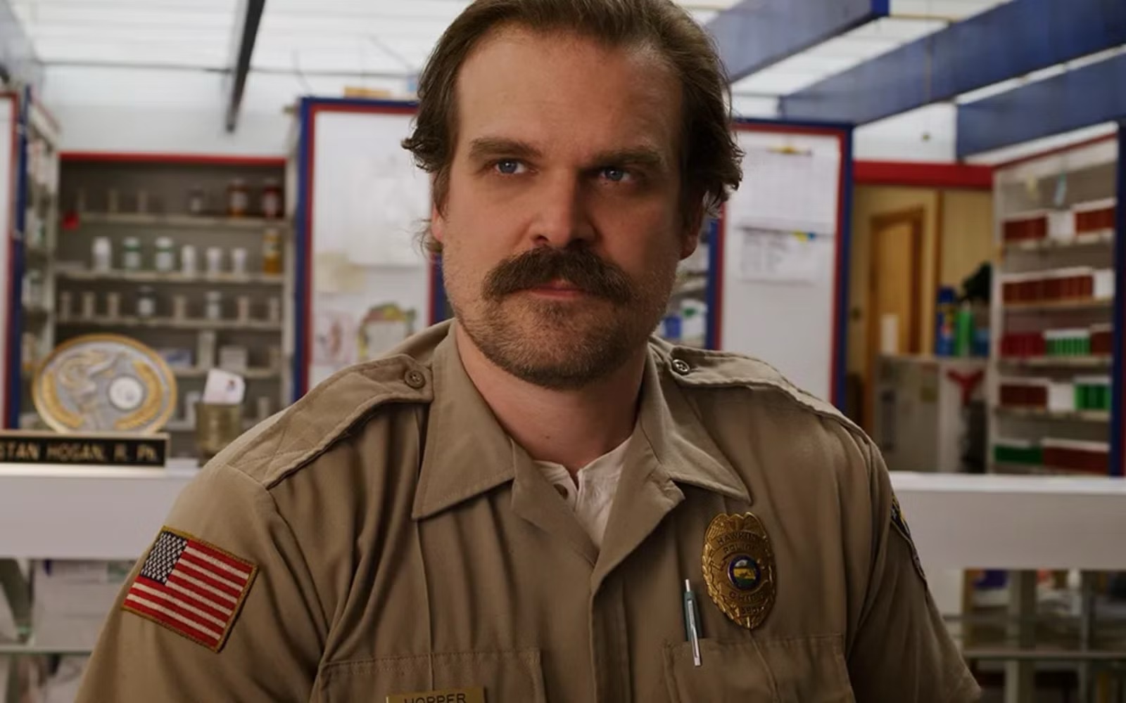 警長Hopper還是一貫瀟灑霸氣的向威爾的媽媽微笑點頭,兩人有默契的⋯當媽媽轉下鑰匙,爆炸同時Hopper也犧牲了⋯