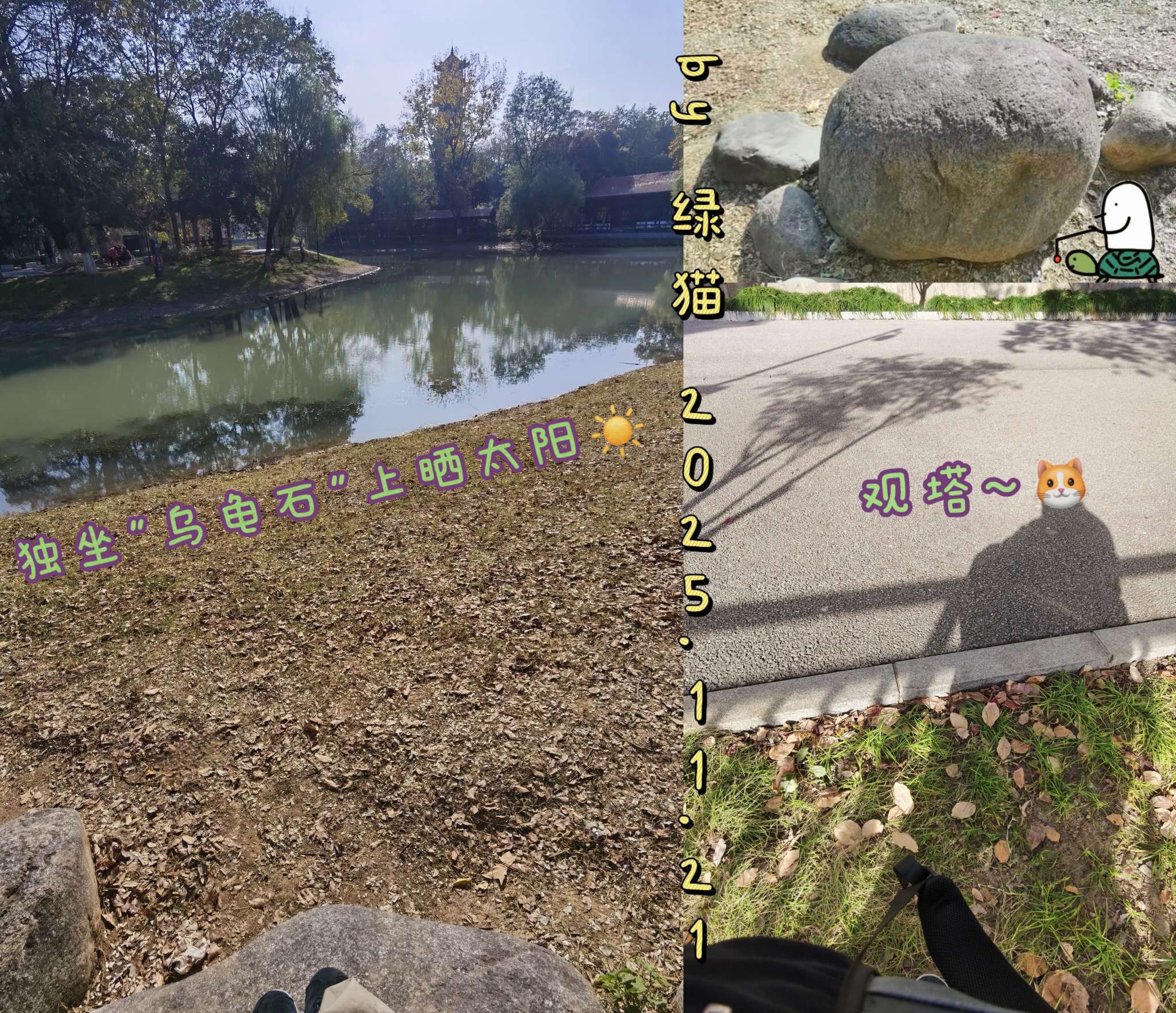 📸【记闲坐"乌龟石"上:暖阳下观塔~】 哪儿都可以运动练功 晴天骑车 漫步解放公园 将沉重无比的双肩包连同自己 放于大石头上... 【古塔/树/鸟/河/船/阳光相伴 均是自然的馈赠】 ✨天地有大美而不言 独处时 乘物以游心~ 被自己的影子牵着 与天地同频 静观皆自得~ #爱摄影# #随手拍#爱摄影#享受独处#爱摄影#日常碎片#随手拍#一个人浪漫# #晒太阳# #随手拍# PS: 坐于"乌龟石"前 绿猫游园吞了四个袁大头包砸!! (☀️冬季更要户外晒太阳🦉详情某天视频里见 ུ)
