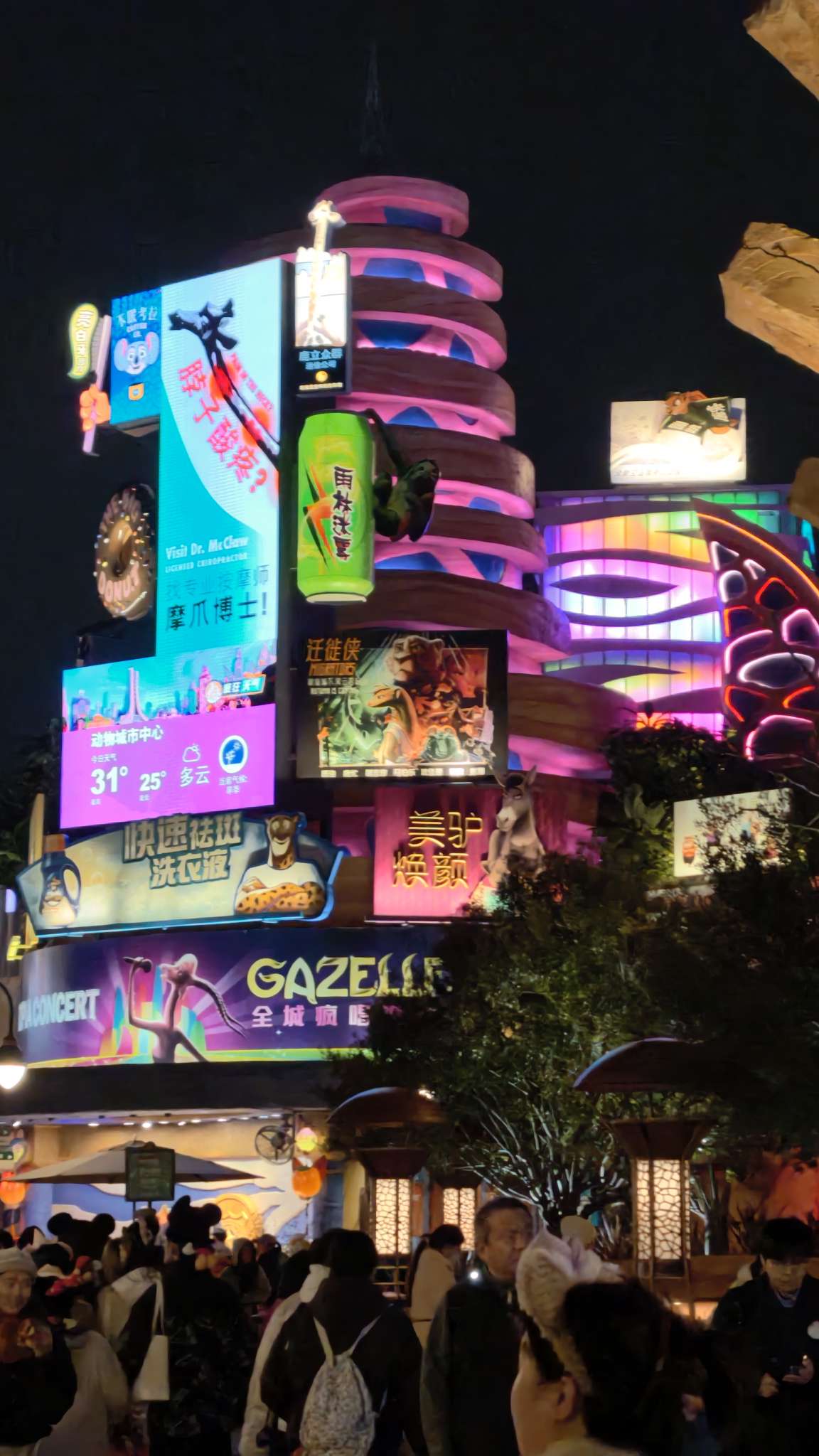 上迪疯狂动物城园区 怪不得这么多人去看,真的像走进动画片里一样,可惜是晚上去的没看到生活秀😢