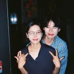 作者靠在她臂弯喝茶